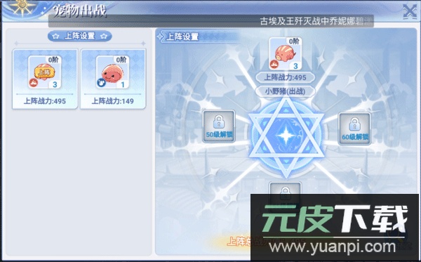 1、获得宠物后,玩家可在宠物界面进行升级、进阶与出战设置;