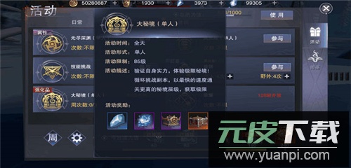 大秘境在85级开放,属于循环挑战模式,系统将持续提升难度直至玩家战败。奖励包含强化石、圣灵、神器及其精炼碎片等后期紧缺的培养道具;若战力足够,开启挂机模式即可持续获取丰厚奖励。