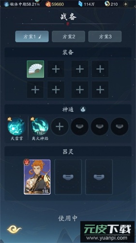 4、每次挑战关卡前,可以调整战备方案,例如更换装备、神通或器灵。