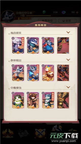 3、推荐阵容:聚焦残血提攻、群体输出与中毒侵蚀的技能搭配。