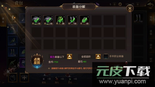 4、通过主线任务获得的过多低级装备,可在背包内进行分解,转化为大量星石与金币资源。