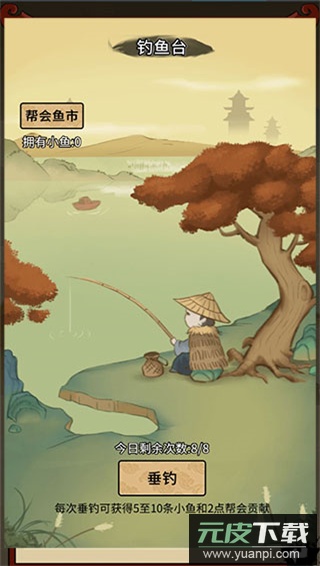 每日可进行钓鱼,所得小鱼可在鱼市兑换稀有资源。
