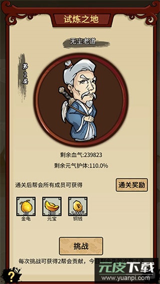 帮会成员共同挑战宗师,击破其元气护体,通关后全员皆可领取奖励;