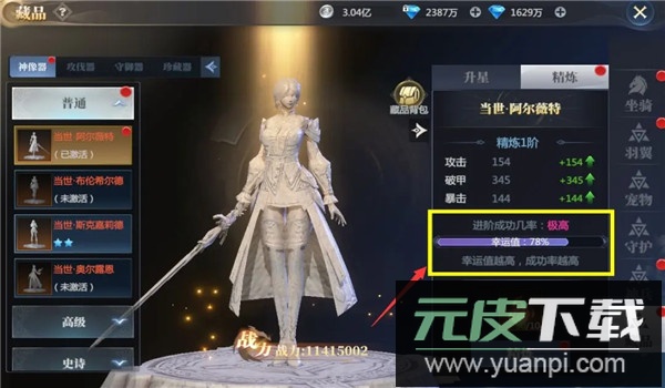7、精炼操作:使用精魄材料可对藏品进行精炼;每次精炼失败都会积累幸运值,幸运值满额后下次精炼必定成功。