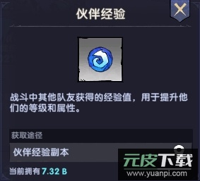 伙伴经验:用于提升伙伴的等级与属性;获取途径:伙伴副本。