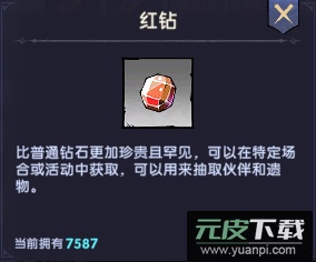 红钻:用于抽取英雄、遗物,购买时装;获取途径:宝箱、充值。