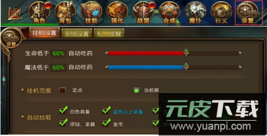 1、进行挂机前,需提前调整好设置选项,具体路径为游戏内“设置”菜单中的“挂机设置”。