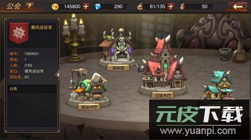 1、公会大厅界面集中展示了所有具备功能性的建筑。
