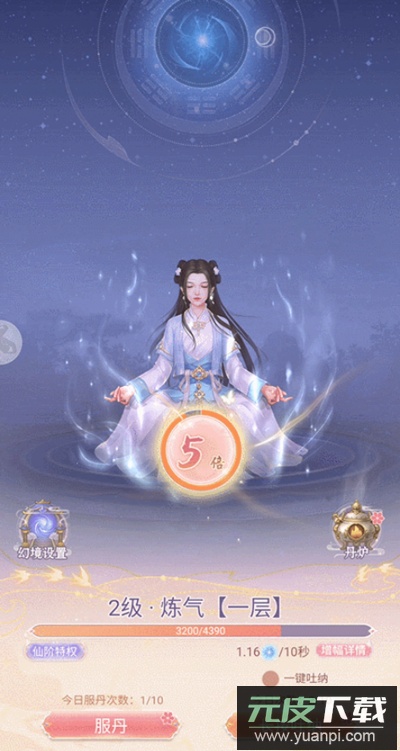 其次是吐纳,长按吐纳按钮可获得当前修为的随机倍数额外加成;每日吐纳次数有限,零点重置,若想增加次数需努力提升仙阶等级。