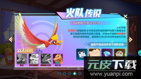 阵容精灵:凤王、超级喷火龙X、喷火龙、索尔迦雷欧