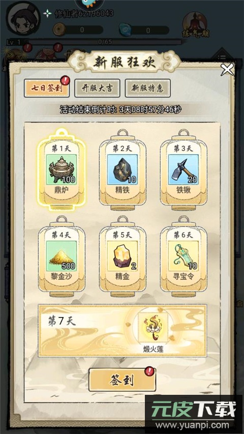 2、每日点击左上角领取开服奖励,奖励内容逐日升级;