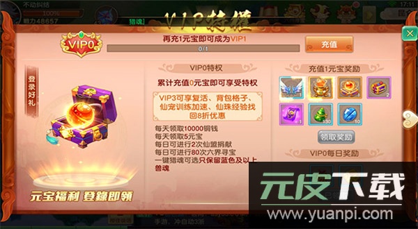 4、点击左上角VIP图标可领取对应礼包,VIP0等级也能获得免费礼包;