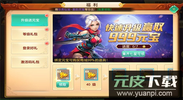 5、七日登录再赠超强神兵、稀有仙翼、限定时装与大量元宝等丰厚奖励;
