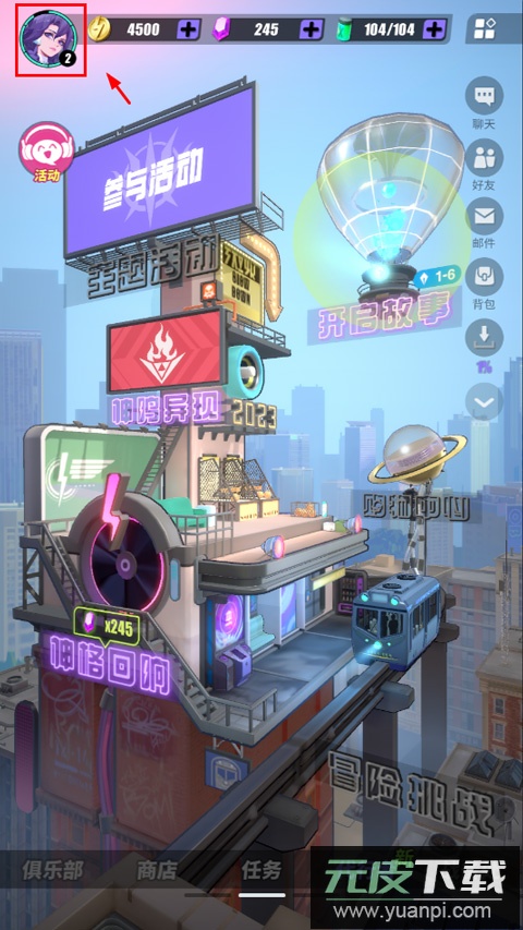 1、打开游戏,点击主界面左上角的个人头像入口;