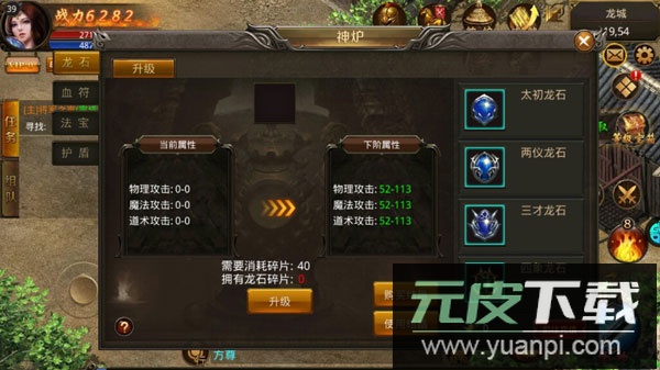 神炉系统需消耗龙石碎片,用以强化物理、魔法及道术攻击,是提升输出的核心环节。