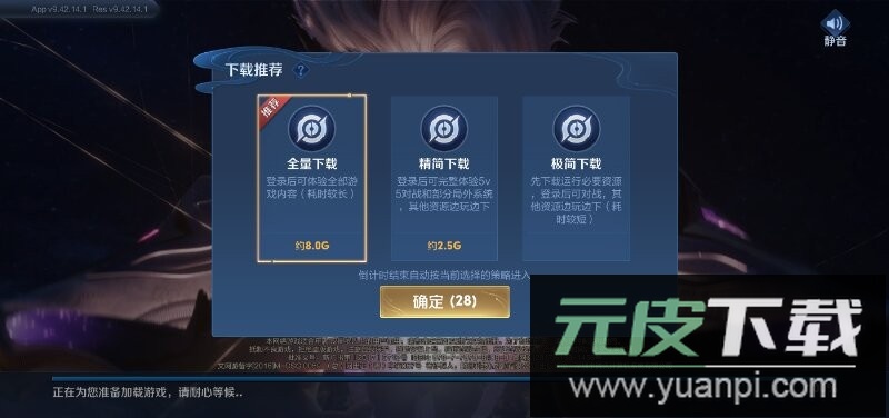 2. 进入游戏数据包下载界面,官方提供了三种下载方案:全量包约8G,精简包约2.5G,极简包约1G;
