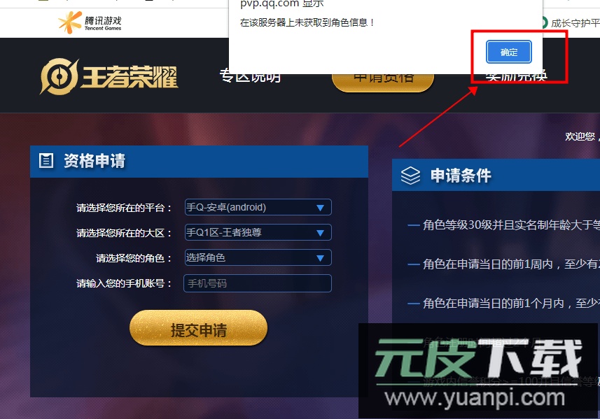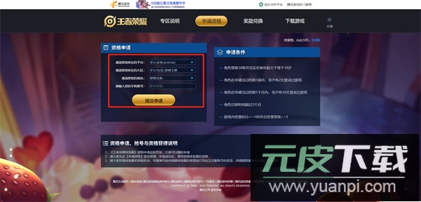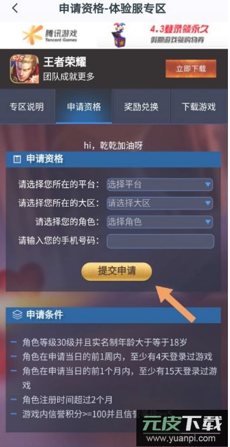 4. 填写平台、大区及手机号码信息,点击提交申请即可。