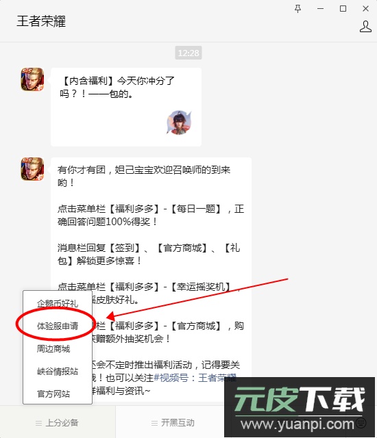 3. 在菜单栏左下角找到【上分必备】,点击其中的【体验服申请】;