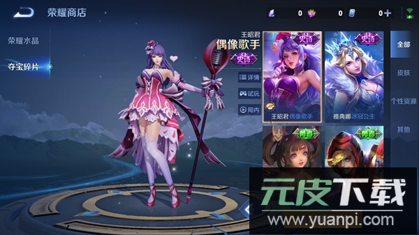 5. 夺宝碎片使用:在荣耀商店的夺宝碎片兑换页面,可使用“夺宝碎片”兑换典藏皮肤专属个性资源。