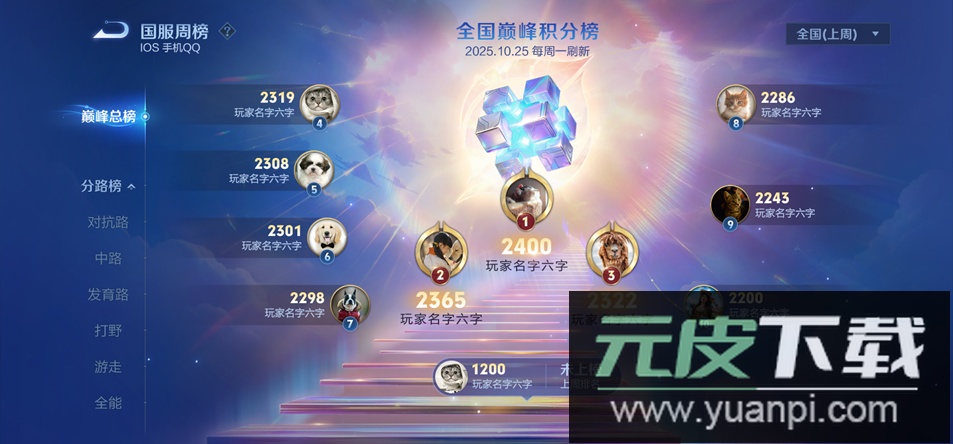 1. 巅峰分路榜以巅峰分进行排名,无需为各分路单独冲分;