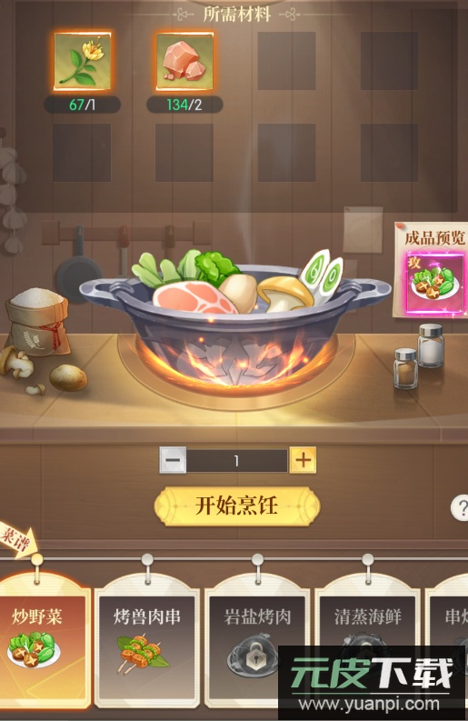 钓得的渔获可找贝尔兑换为火石,以此循环获取烹饪资源。准备好食材后,选择目标菜谱即可开始制作。