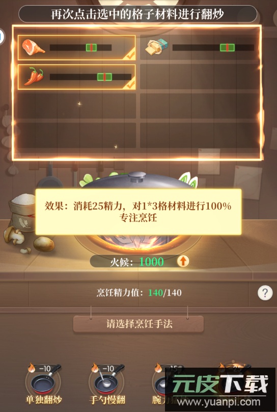 过程中需关注火候与精力。火候越高,单次操作提升的美味值越多;火候低于400时效果会减弱。每次操作都会消耗精力与火候,因此需合理规划手法顺序与火候调整,确保在精力耗尽前完成烹饪。