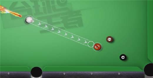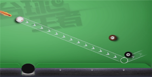 使用前,目标黑球被其他球遮挡,无法直接瞄准击打。