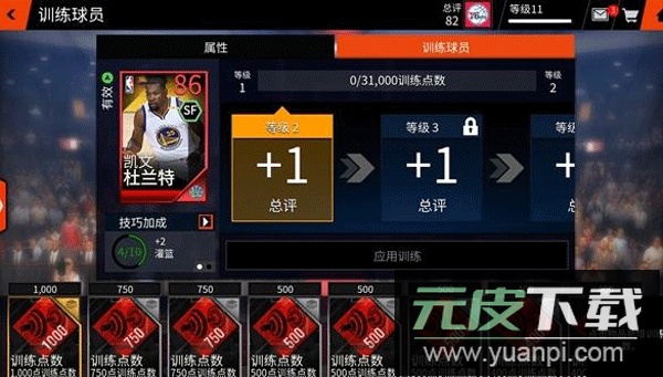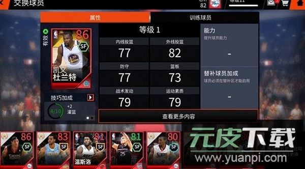 以精英球员凯文·杜兰特为例,其能力值较为全面,尤其在外线投篮方面具备一定优势。