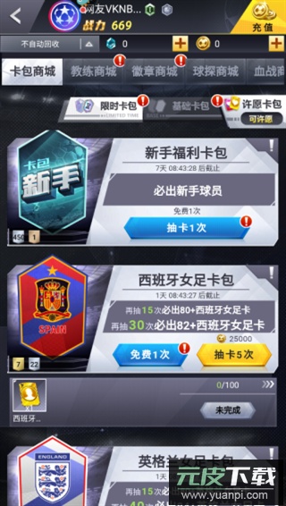 2、进入主界面找到抽卡功能,获取球员卡牌;