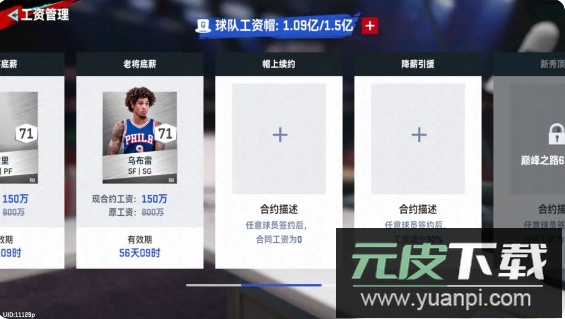 游戏内设有工资管理系统,通过右上角“+”入口进入,可与球员签订特殊合约以降低薪资,从而在工资帽范围内组建更强阵容。合约需使用帽上续约卡、降薪引援卡、金额中产卡、老将底薪卡等资源,具体获取途径请关注游戏内说明。