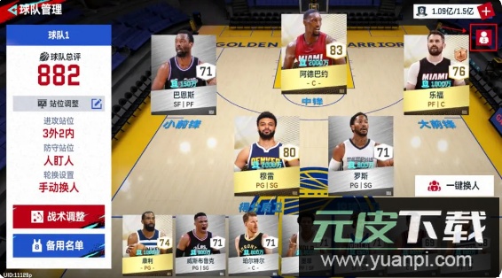 每支队伍包含12名球员,各自拥有对应的薪资。若球队工资超出上限,可点击天梯赛界面中的“球场”按钮快速进入球队管理界面进行调整。