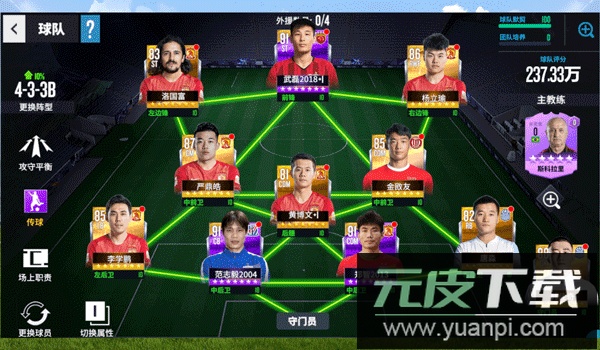 3、华南区阵容可以广州队为核心进行组建;配合任务获得的严鼎皓、李学鹏及广州队的唐淼等球员,能够较快形成战斗力。