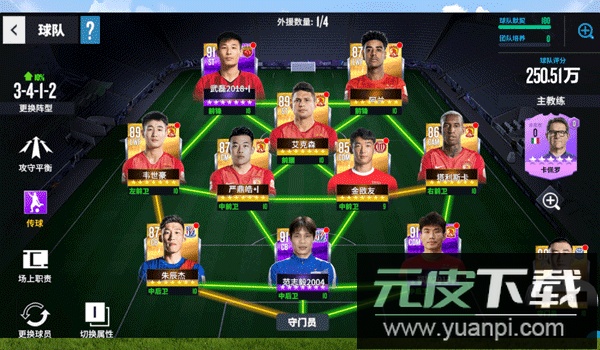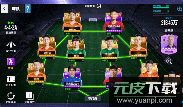 7、同样通过活动获取紫色球员卡,结合教练加成,可在短时间内组建出默契满值的阵容;门将位置也可选用申花的曾诚。