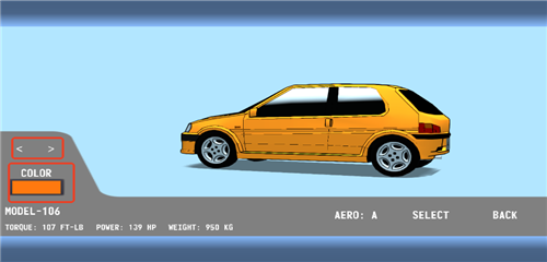 3、更改赛车的外观,我们可以在左侧使用左右箭头来更改颜色,也可以直接点击色块自定义颜色;