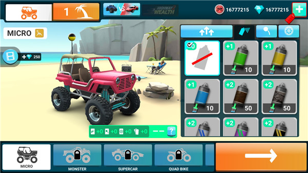 1、进入游戏后,点击右侧升级选项,即可对车辆性能进行提升;