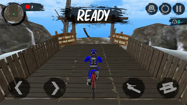 3、进入赛道后,左侧虚拟摇杆控制自行车转向,右侧按钮分别负责加速与刹车。