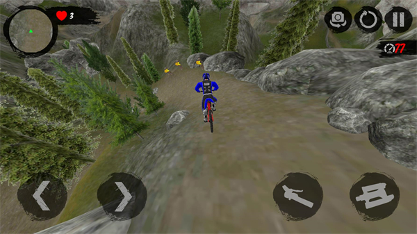 山地自行车速降是一款从极限运动中汲取灵感的沉浸式竞速手游。玩家将扮演专业车手,驾驶精心定制的山地自行车,在随机生成的陡峭赛道上飞驰。游戏采用真实物理引擎与动态天气系统,湿滑路面会直接干扰车辆操控;玩家可以持续解锁车辆改装部件与传奇车手成就,亲身感受速度与技巧的激烈碰撞。
