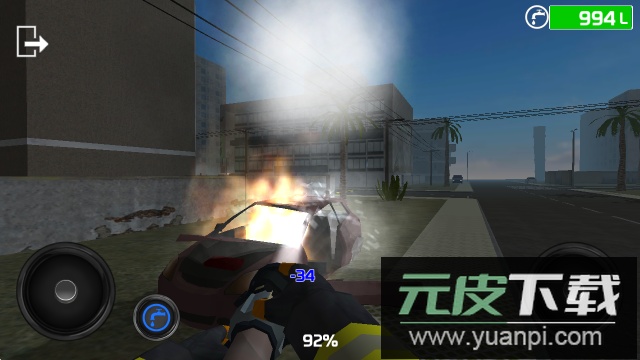 6、随后通过左侧摇杆移动角色,右侧摇杆调整喷水方向,点击中间按钮进行喷水灭火。