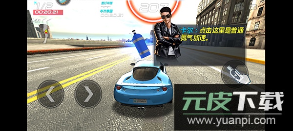 2. 游戏界面右上方设有氮气瓶标识,需要收集赛道上的氮气道具才能激活使用;