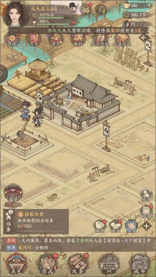 5、日常玩法解锁后,完成县学授课、招贤纳士等任务,收获升级经验;
