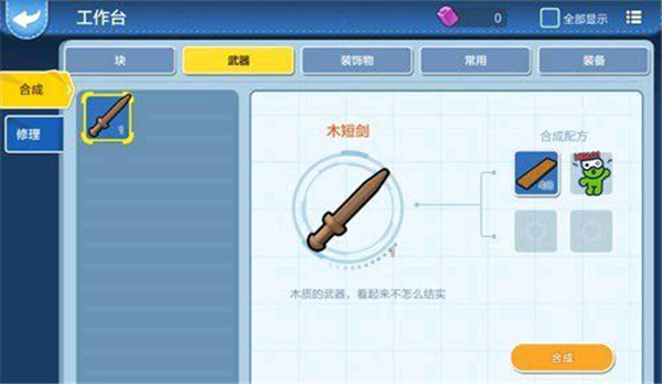通过工作台可以制作更多道具,前期建议先做一把木剑以便应对怪物。