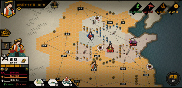 军队是高于军团的编制单位,提升军队数量能整体增强军力。以秦国开局为例,五块空地中可建造三座军营,以缓解单兵营训练缓慢的压力;其余空地可分配于民居与农田,保障前期军事研发与训练的资源。攻占初期城池后,集中资源研究徭役与革甲技术,占领一国并非难事;面对坚固城池则继续积累资源,持续投入军事科技,兵力增长将显著加速。