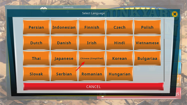 2、在语言列表中选取Chinese选项,即可将游戏界面切换为中文版本。