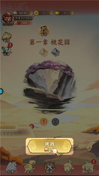 2、游戏开局第一章的地图是桃花园,找到挑战按钮点击就能进入关卡;