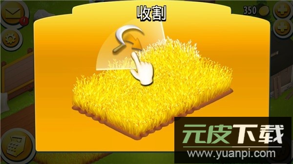 2、点击成熟的小麦地,拖动镰刀就能完成小麦收割操作;