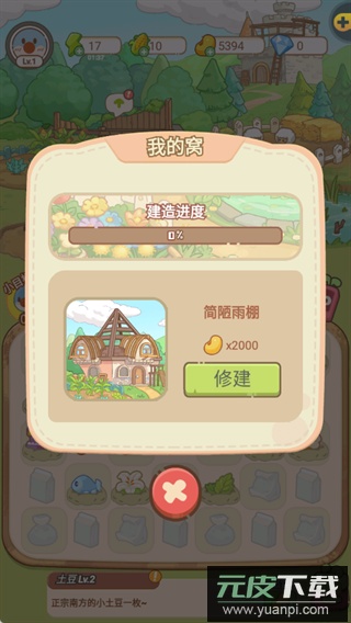 4、积累2000豆子可修建“简陋雨棚”,逐步升级自己的家园建筑。
