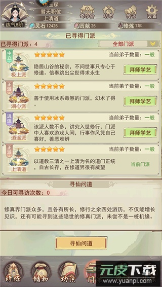 1、加入门派:玩家加入门派后,方能进入藏经阁学习各类功法与法术,这是提升角色实力的主要途径;玄功阁用于修习功法,玄术阁则用于掌握法术。