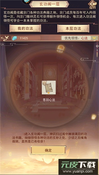 4、功法修习:藏经阁玄功阁收藏着门派功法,职务等级决定了可进入的楼层与可学习功法的星级;玩家可设定优先领悟的功法类型,但领悟结果仍存在一定随机性。