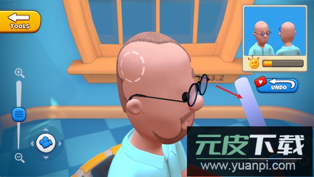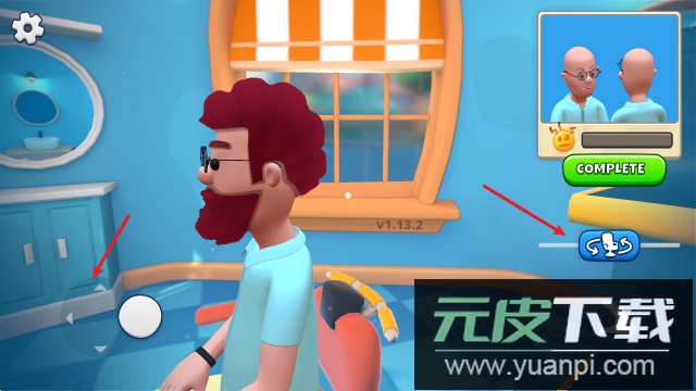 1、进入游戏后,你可以使用左侧的虚拟摇杆控制角色移动,右侧区域则用来旋转理发椅。