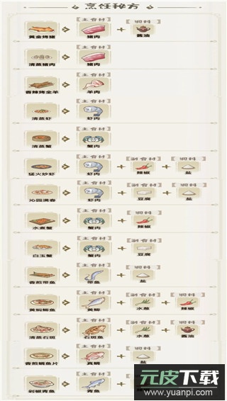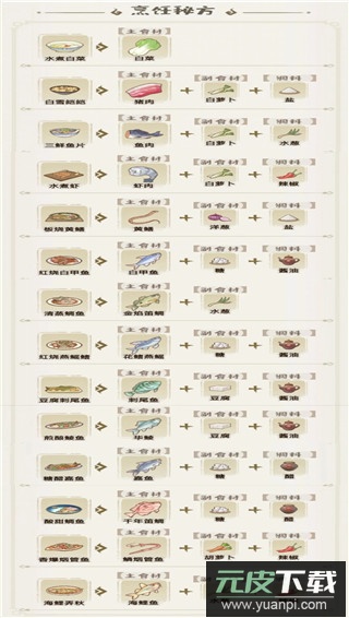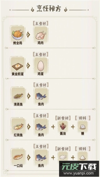 注:老虎鱼、武昌鱼、蝴蝶鱼、皱唇鲨、狮子鱼以及马肉目前无法用于烹饪。